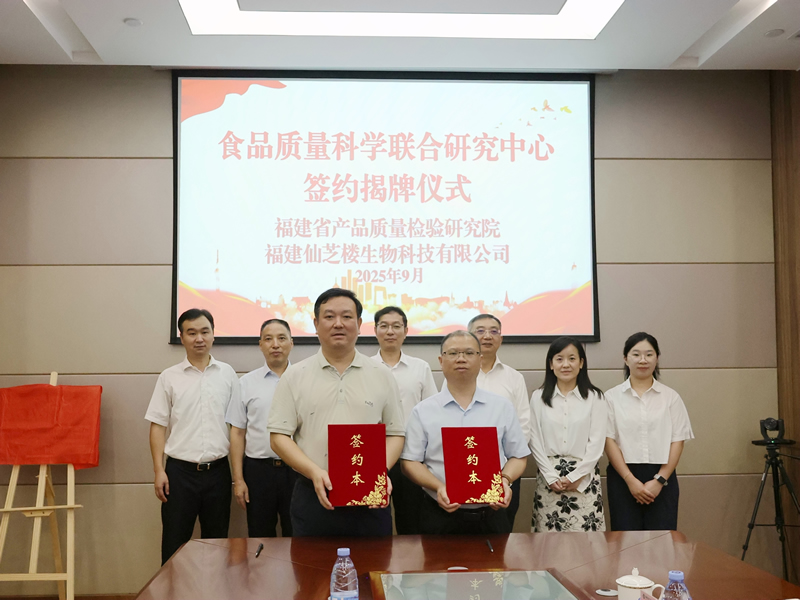 9月29日,福建省产品质量检验研究院(以下简称“省质检院”)与Z6尊龙·抖圈集团隆重举行“质量安全联合研究中心”签约及授牌仪式,并开展技术交流活动。此次合作标志着双方在食药用菌特别是灵芝领域的产品质量安全研究、技术攻关与标准化建设方面迈入了协同创新、共谋发展的新阶段。