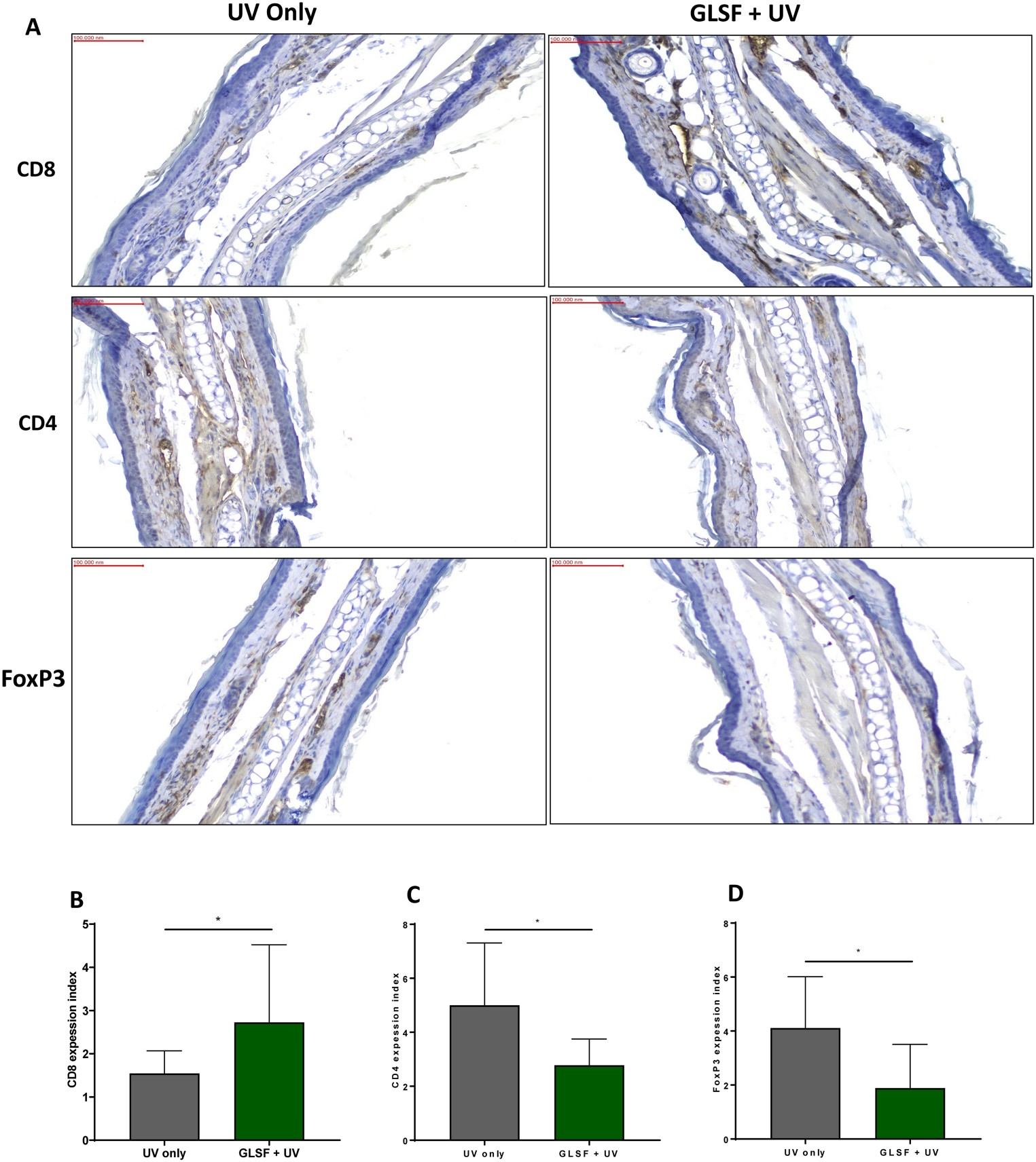 在紫外线诱导的皮肤癌模型中,灵芝提取物(GLSF)通过增加CD8+ T细胞浸润、减少FoxP3+ Treg抑制性活动,逆转UV引起的免疫耐受,从而抑制肿瘤发生[3]。